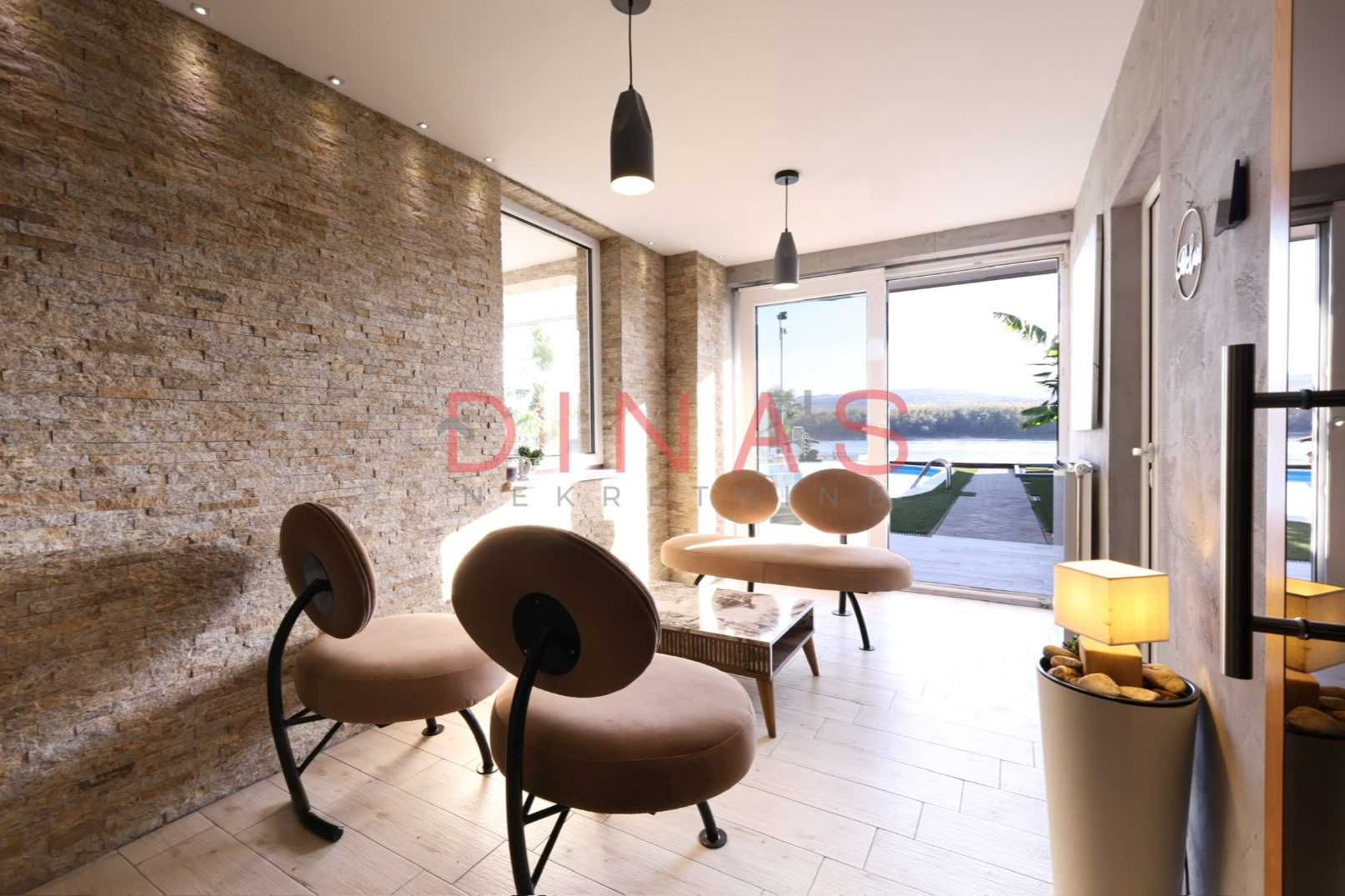 Na prodaju moderno uređena šestosobna kuća na Kamenjaru, smeštena u mirnom i zelenom okruženju, sa predivnim pogledom i direktnim izlazomna Dunav, na samo 10 min od centra Novog Sada. Poseduje bazen, saunu i garažu, dok je dvorište lepo uređeno i pruža potpunu privatnost. Stambeni deo-298m², garaža i pomoćne prostorije u dvorištu-56m² , garaža ispred kuće-54m², terasa iznad Dunava-112m². Ukupno 519m². Na obali se nalazi ponton koji omogućava direktan pristup reci, savršen za ljubitelje prirode i vodenih aktivnosti. Ova nekretnina spaja mir i ekskluzivnost, idealna je za porodični život ili kao vikend oaza nadomak grada. U navedenu cenu nije uključena posrednička naknada od 3%. Više informacija na tel: 0631119000