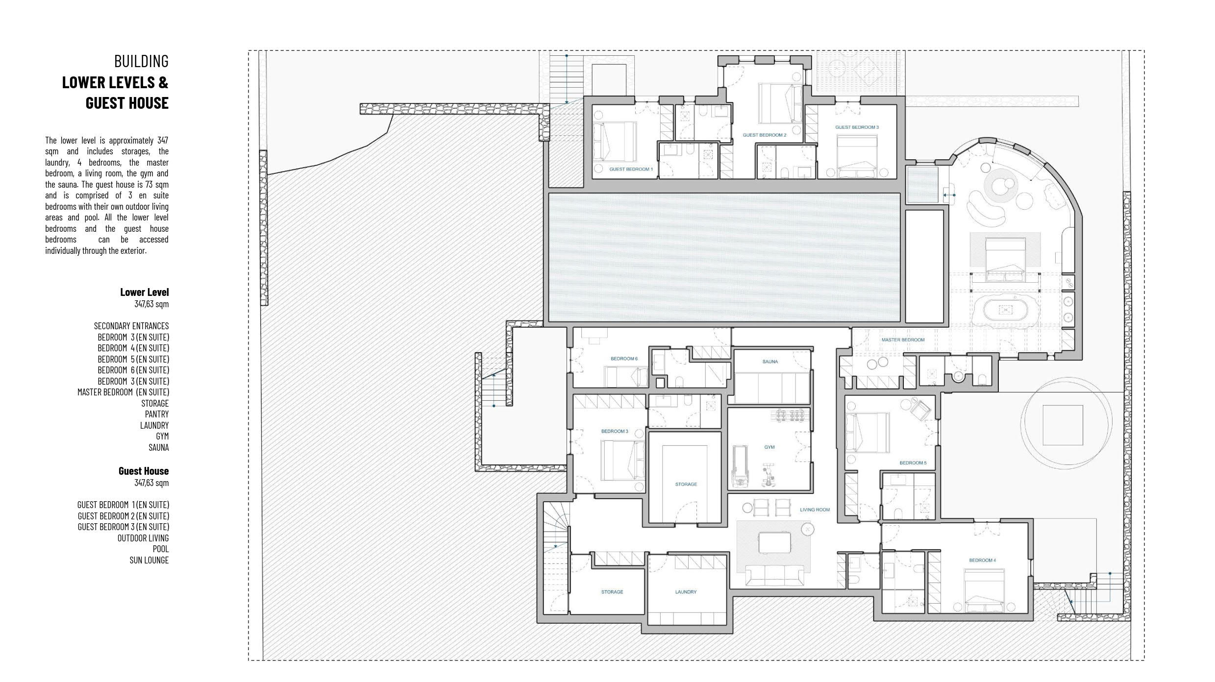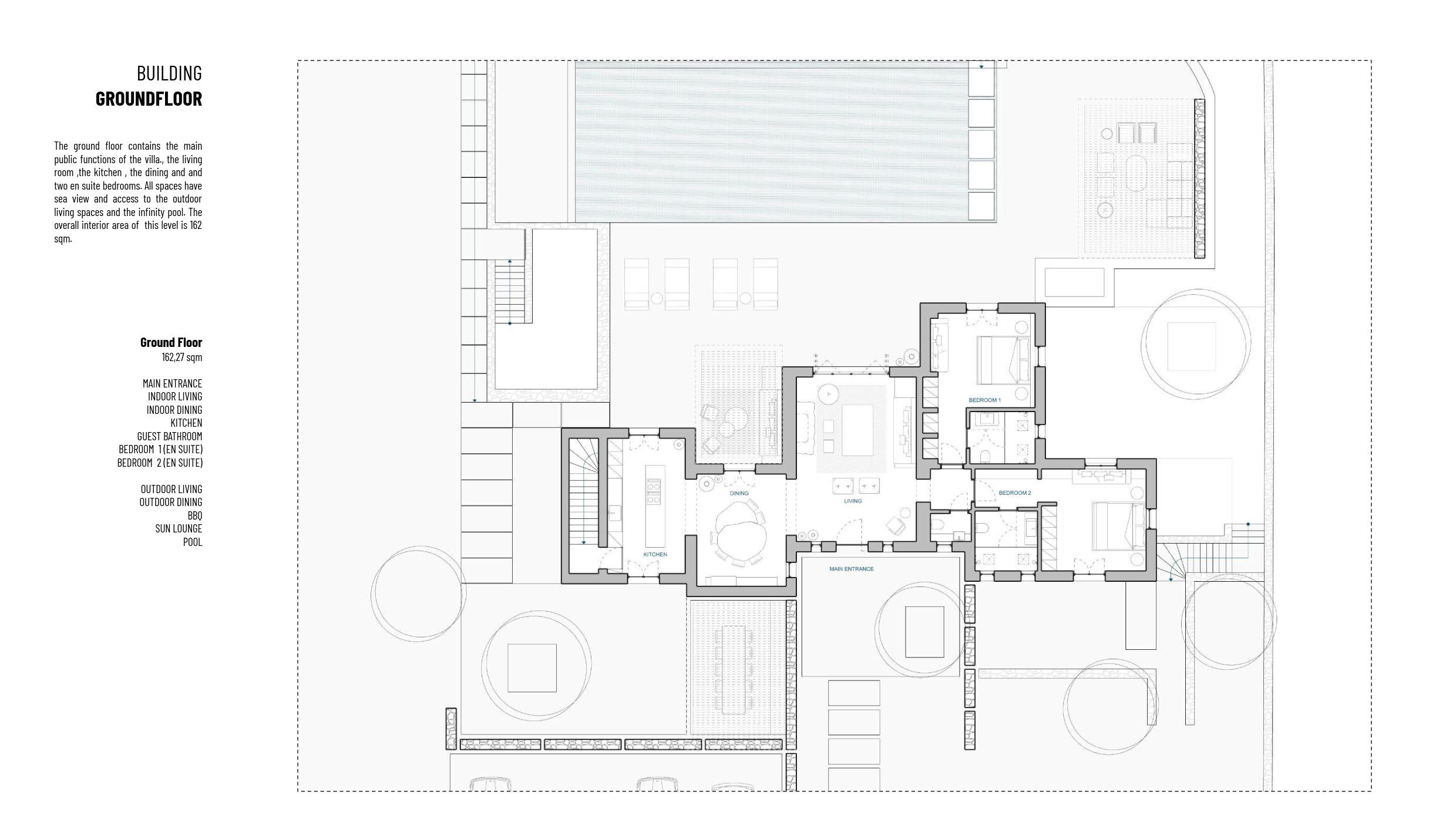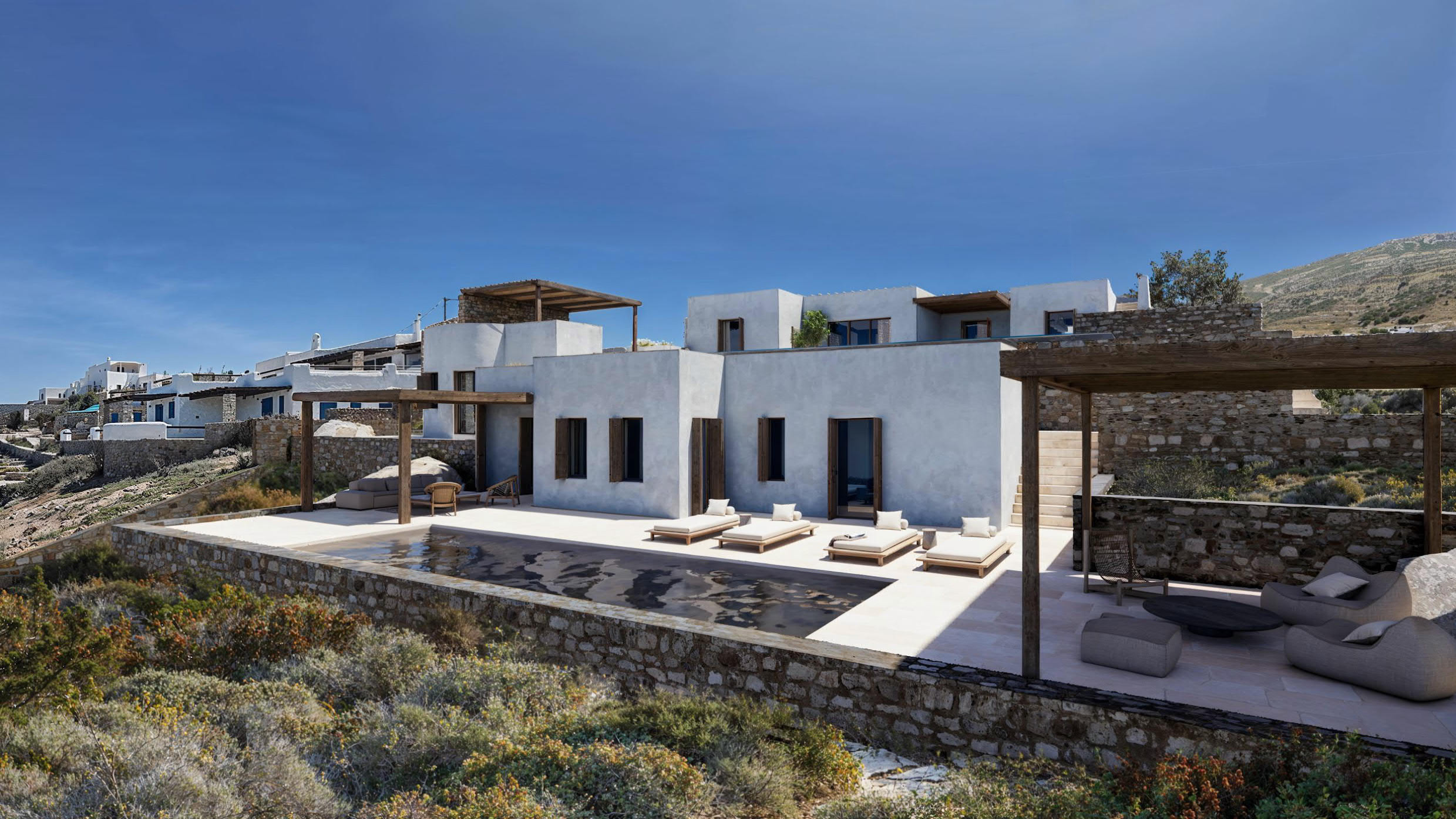 Vila u izgradnji, površine 583m², smeštena u oblasti Korakia na zapadnoj strani ostrva Paros, na placu od približno 4.002m². Idealno pozicionirana između dva glavna ulazna punkta na ostrvu. Plac se nalazi pored mora i pruža spektakularan pogled na Egejsko more ka zapadu. Teren je nagnut, sa visinskom razlikom od 16m, što omogućava izgradnju vile na više nivoa. Objekat se sastoji od prizemlja, nižeg nivoa i kuće za goste. Prizemlje površine 162m² obuhvata glavne zajedničke prostorije vile — dnevni boravak, kuhinju, trpezariju i 2 spavaće sobe sa kupatilima. Sve prostorije imaju prelep pogled na more i izlaz na spoljašnje delove vile, gde se nalazi prostor za odmor na otvorenom, roštilj i bazen (infinity pool) sa ležaljkama za sunčanje. Niži nivo ima približno 347m² i uključuje 4 spavaće sobe, glavnu spavaću sobu, dnevni boravak, teretanu sa saunom, ostave, špajz i perionicu. Kuća za goste ima površinu od 73m² i sastoji se od 3 spavaće sobe sa kupatilima, svaka sa svojim spoljnim prostorom za odmor i bazenom sa ležaljkama. Sve spavaće sobe na nižem nivou, kao i one u kući za goste, imaju poseban spoljašnji pristup. LOKACIJA I PRISTUP: Do vile se dolazi lokalnim putem sa istočne strane, a udaljena je oko 12–13 minuta vožnje od glavne luke Parikia (5,3 km) i aerodroma (7,9 km). Ostrvo Paros je lako dostupno avionom iz Međunarodnog aerodroma u Atini i drugih grčkih aerodroma poput aerodroma u Solunu. Paros je takođe povezan trajektima sa Pirejem i drugim lukama. Klasični trajekti prelaze rutu Pirej–Paros za oko 4,5 sata, dok brzi trajekti putuju oko 3 sata. Ostrvo je povezano i sa lukama Lavrio i Rafina, dok luke Naoussa i Piso Livadi povezuju Paros sa drugim Kikladskim ostrvima. Iz luke Pounta moguće je preći trajektom na obližnje ostrvo Antiparos. Paros je jedno od najlepših grčkih ostrva, poznato po beskrajnim peščanim plažama, šarmantnim tradicionalnim selima i živopisnom noćnom životu. Nalazi se u središtu Kiklada i ima oko 120 km obale. Ostrvo na jedinstven način kombinuje moderne i tradicionalne elemente, spajajući kikladski stil arhitekture, magične plaže, izvanrednu gastronomiju, poznate lokalne specijalitete i istorijske spomenike. Cena zavisi od faze izgradnje: Trenutna cena (u toku izgradnje): 2.200.000 € Cena po završetku izgradnje: 4.500.000 € Na navedenu cenu se obračunava posrednička naknada.