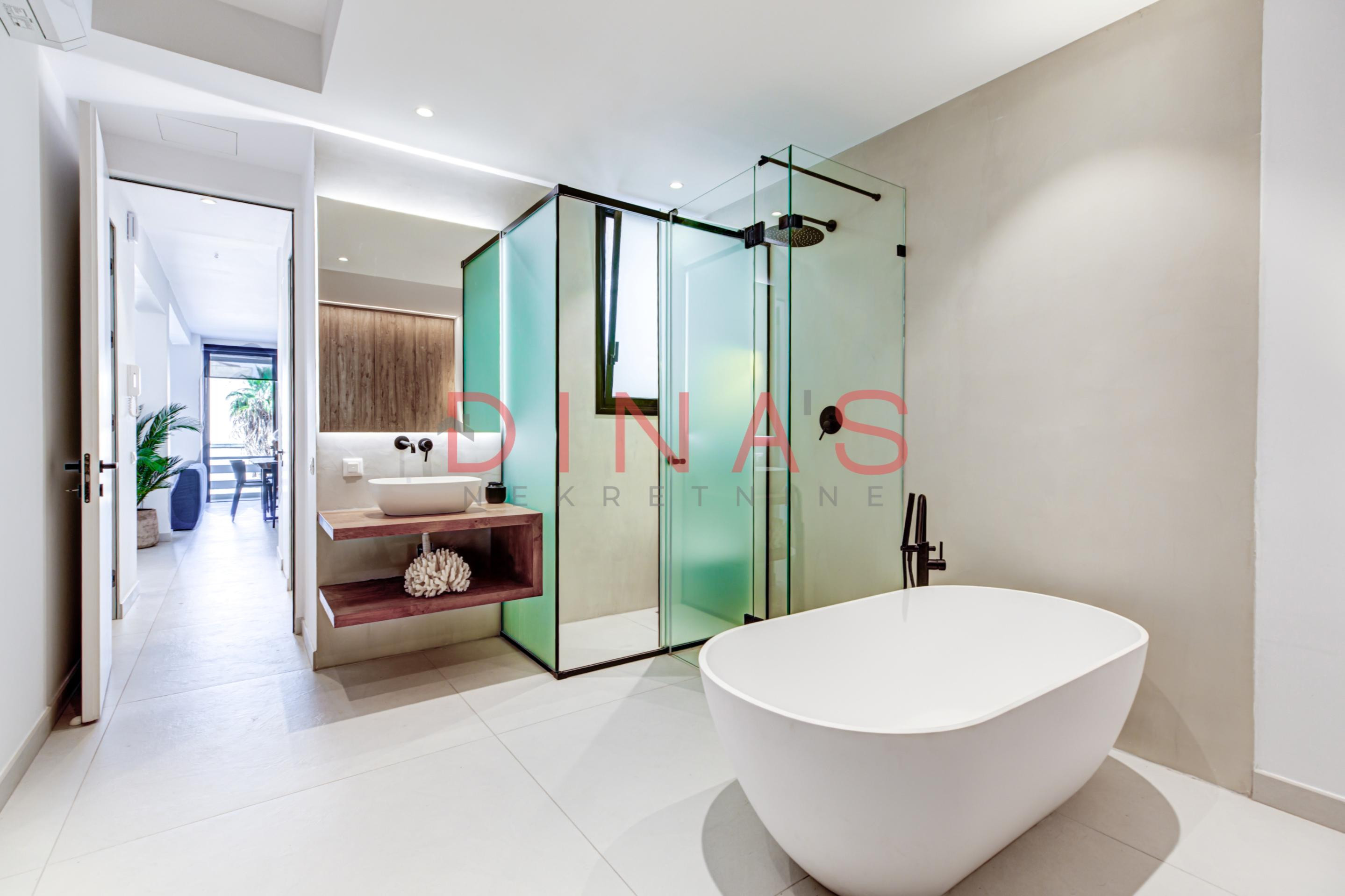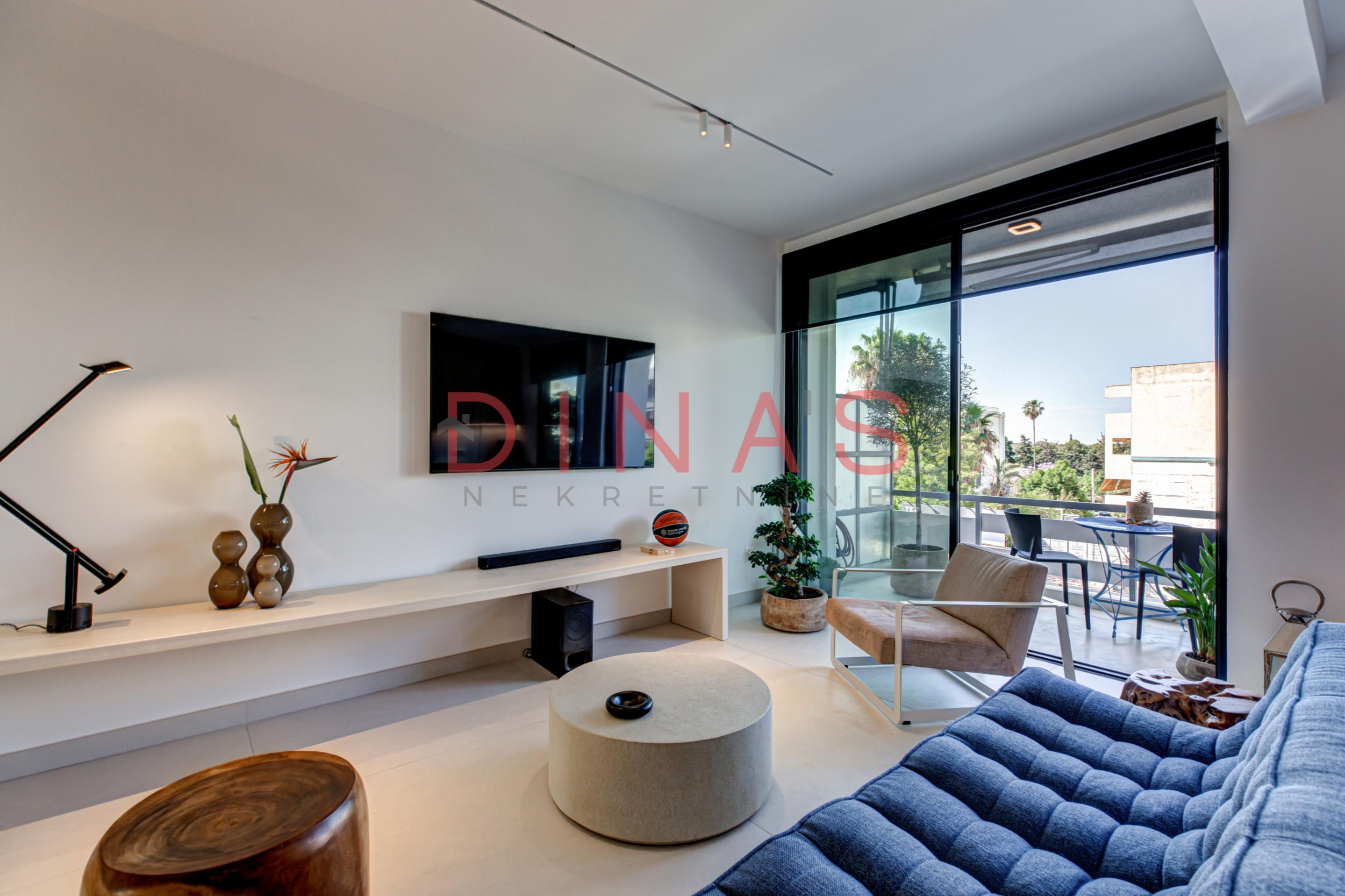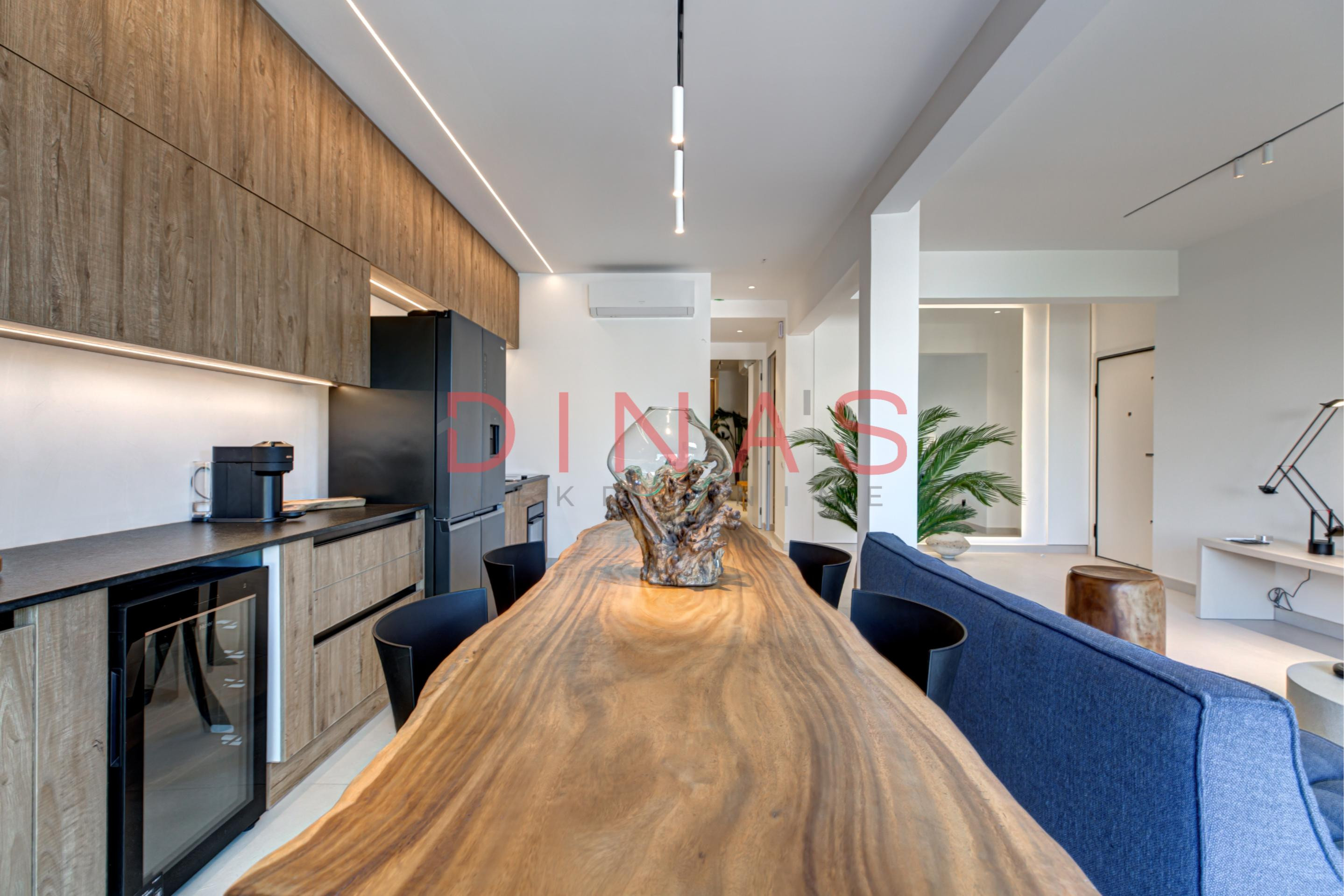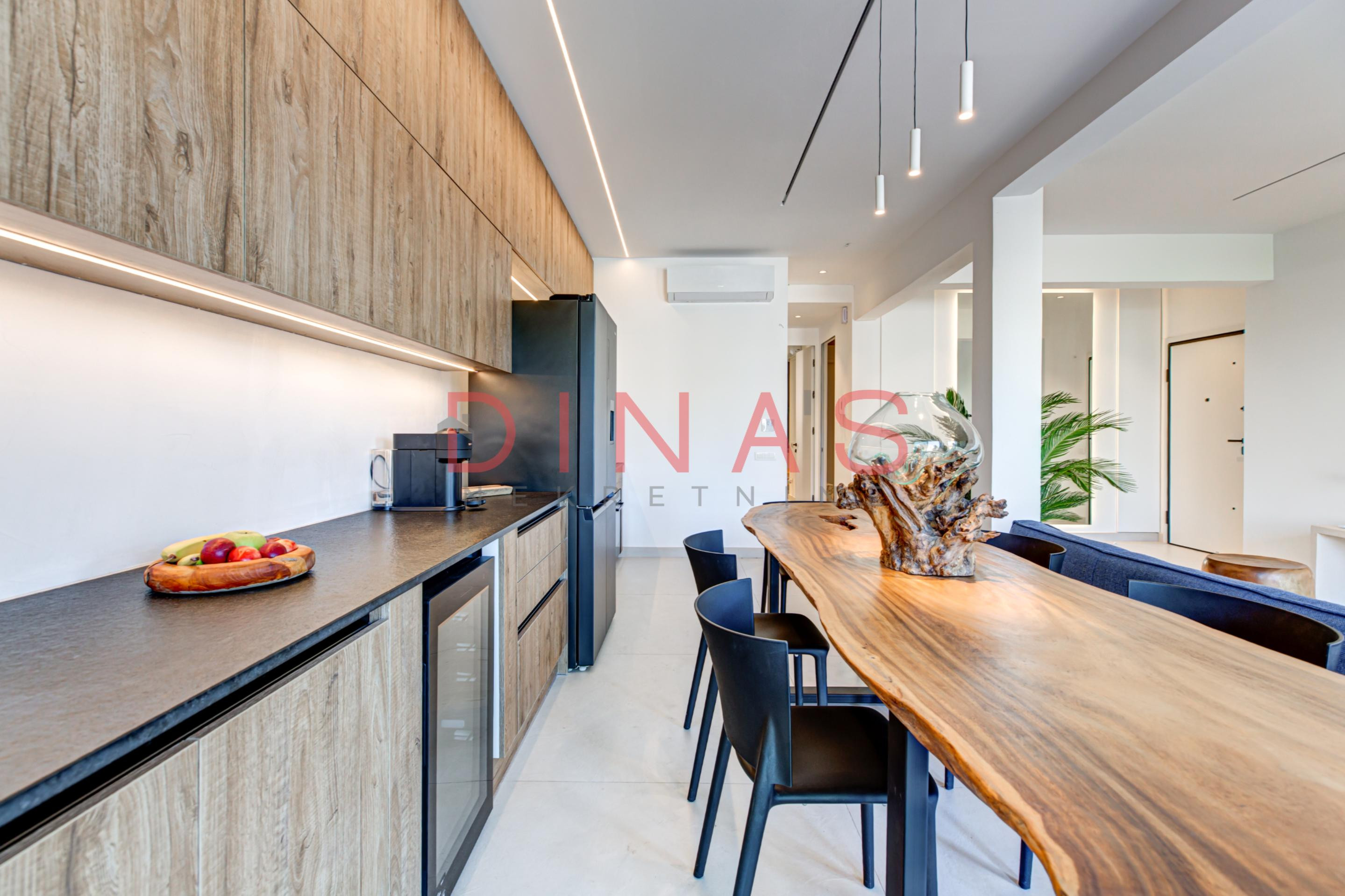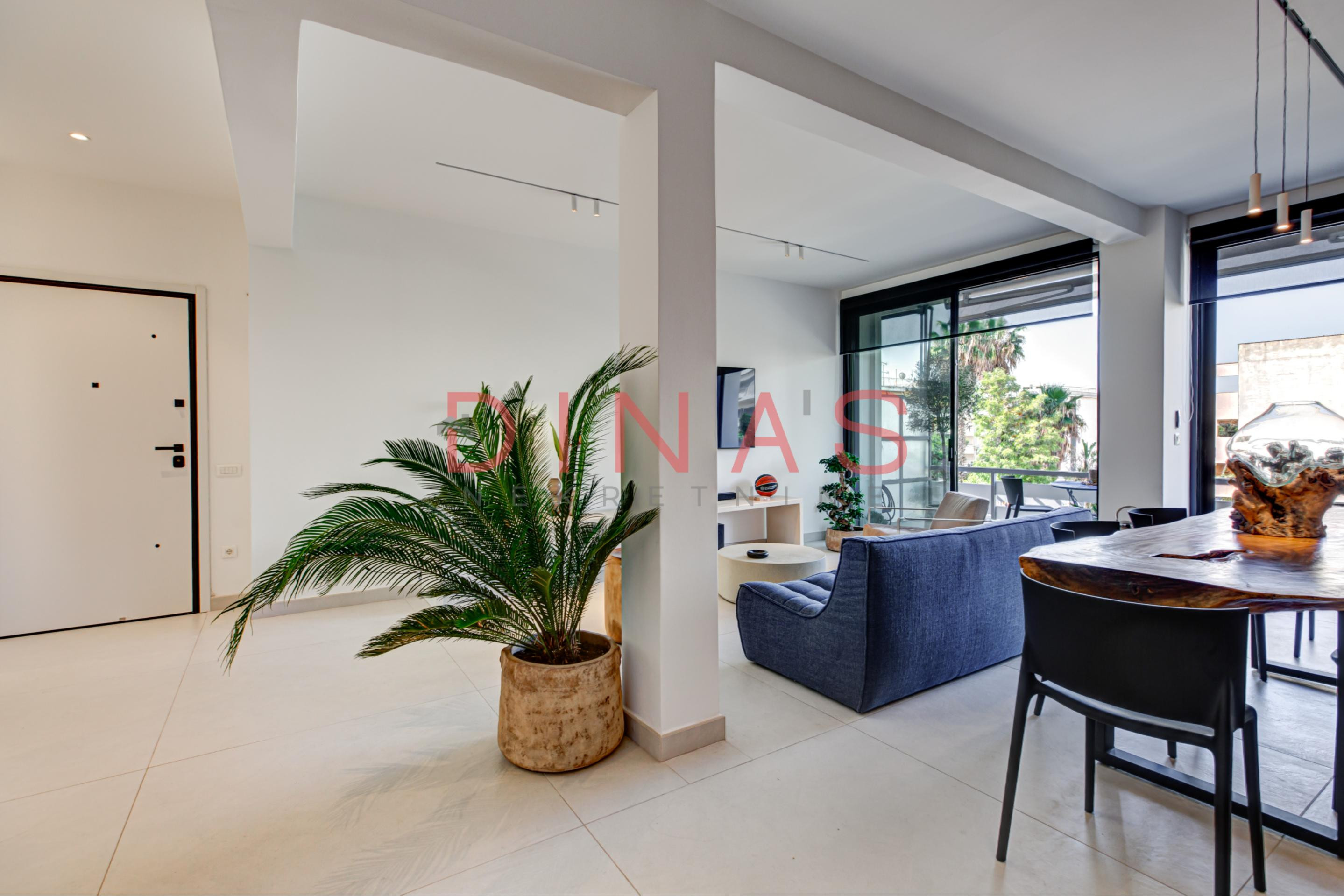 Smešten u centru Glifade, ovaj predivan stan od 100m² na trećem spratu pruža luksuzan doživljaj stanovanja. Sastoji se od prostrane dnevne sobe sa trpezarijom i moderne kuhinje sa izlazom na terasu. Dve spavaće sobe od kojih je jedna master, dva kupatila i ostava. Stan gleda na živopisnu trgovačku ulicu — jednu od najtraženijih u Glifadi. Nalazi se u blizini vrhunskih restorana i ekskluzivnih butika, a stanovnici uživaju u jednostavnom pristupu plaži i elegantnim kafićima na obali mora. Zgrada je izgrađena 1978. godine, a stan je potpuno renoviran 2024. godine. Podno grejanje i klime. Uživajte u spoju morskog i urbanog života na prestižnoj lokaciji u samom centru Glifade. Uknjiženo, useljivo. Na navedenu oglasnu cenu se obračunava posrednička naknada.
