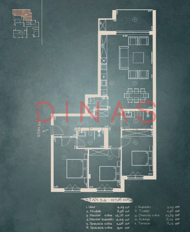 Četvorosoban stan u izgradnji renomiranog investitora na jednoj od najtraženijih lokacija u gradu. Vrhunski kvalitet gradnje i opreme. Nalazi se na V spratu, dvostrane orijentacije. Komforan dnevni boravak sa kuhinjom i trpezarijom, 3 spavaće sobe od kojih je jedna master sa kupatilom, hodnik, kupatilo i toalet, terasa. Mogućnost kupovine garažnog mesta. Rok izgradnje decembar 2025.god. Navedena oglasna cena je sa uključenim PDV-om i posredničkom naknadom od 3%. Više informacija na tel: 0631119000