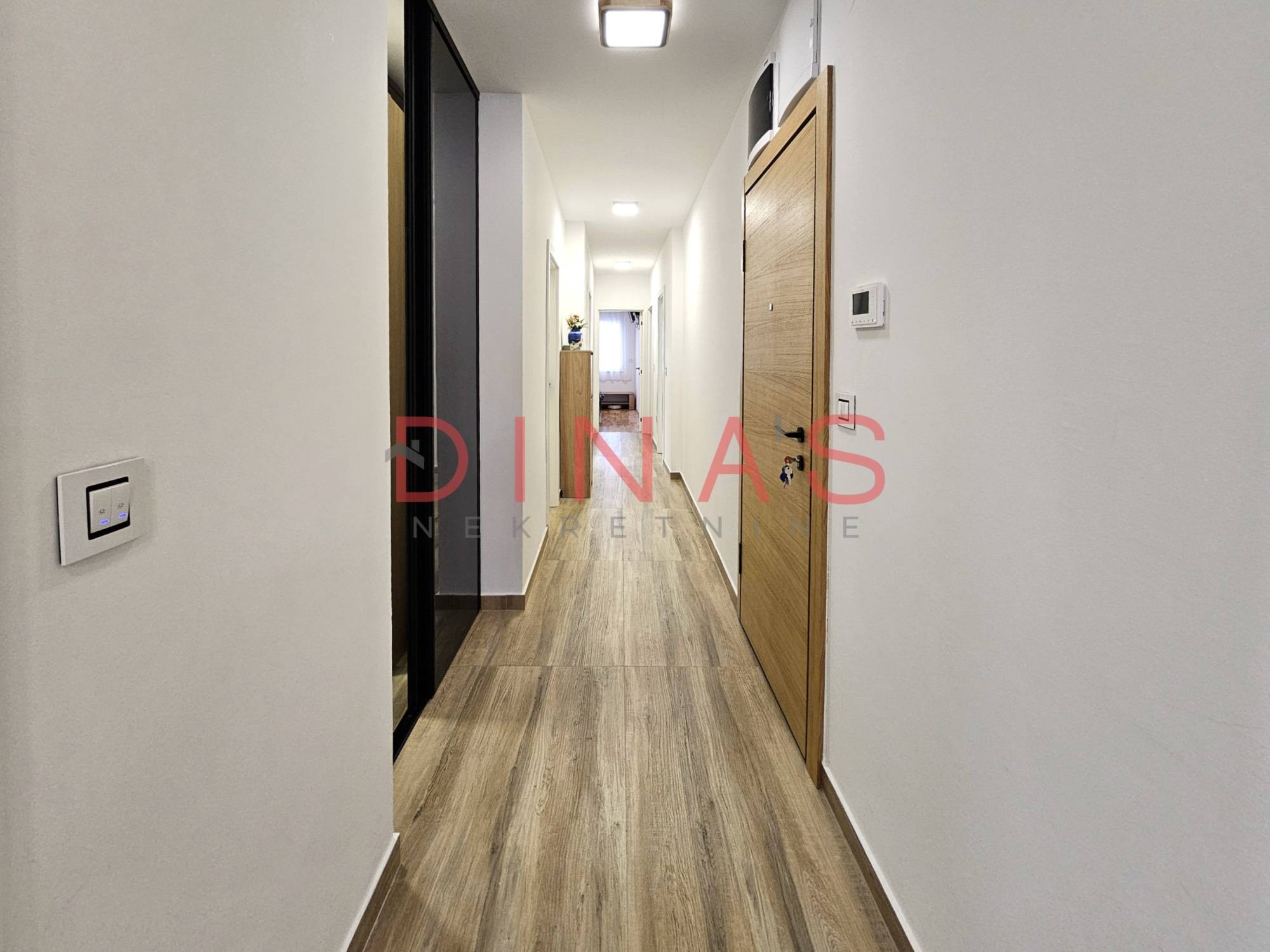 Prodaje se nov, moderan četvorosoban stan u urbanoj vili, na mirnoj i povišenoj lokaciji iznad Preradovićeve ulice u Petrovaradinu. Stan se nalazi na prvom spratu, poseduje tri odvojene spavaće sobe, komfornu dnevnu sobu sa trpezarijom i kuhinjom, garderober, dva kupatila, dve terase sa hladnom ostavom. Grejanje na gas sa podnim grejanjem i minimalnim režijama. Uknjižen je, brzo useljiv. U blizini se nalaze osnovna škola i autobusko stajalište udaljeno 300 metara. Parking mesto uračunato u cenu. Mogućnost kupovine ostave u suterenu od 6m². Na navedenu oglasnu cenu se obračunava posrednička naknada od 3%. Više informacija na tel: 0612709392
